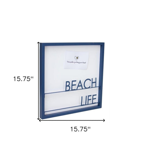 16" X 16" Blue Beach Life Wood and Metal Square Framed Art
