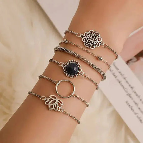 5-piece Bohemian Shell Moon Charm Bracelet Set for Women