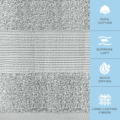 6 Pcs Resort Collection Soft Hand Towels 16x27 in Luxury Plush Cotton Light Gray