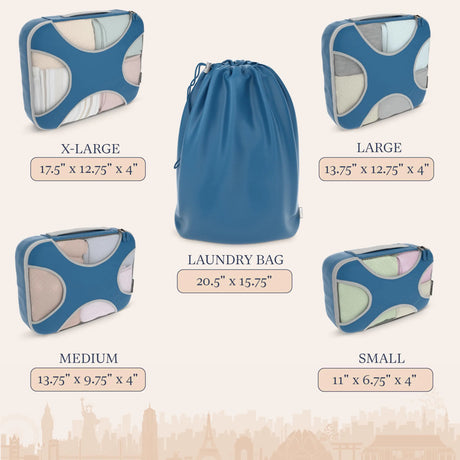 5 Set/8 Set Packing Cubes - Travel Organizers with Laundry Bag Set of 5 5 Set - Navy Blue