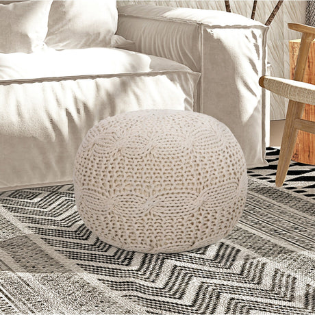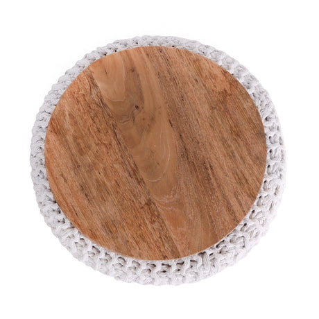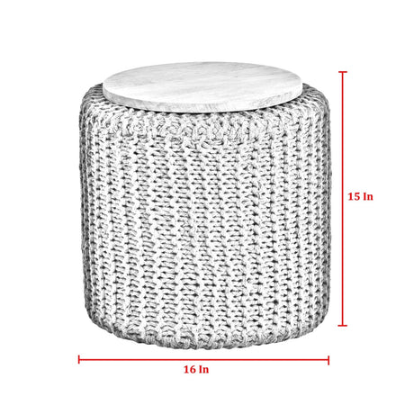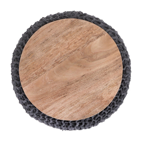Urijah Hand Knitted, Wooden Tray Pouf