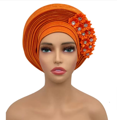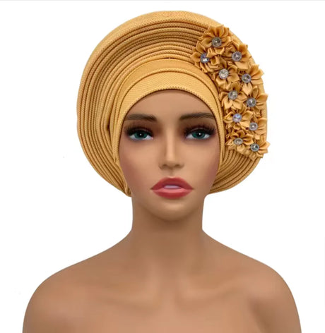 Stunning Floral Auto Gele Headwraps - 2024 New African Turban for Elegant Weddings & Parties