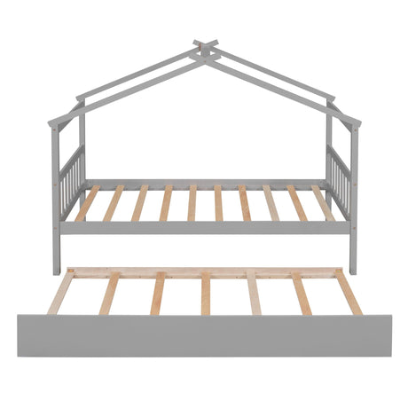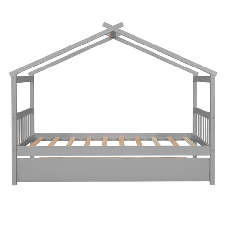 Wooden House Bed With Twin Size Trundle by Couch.com