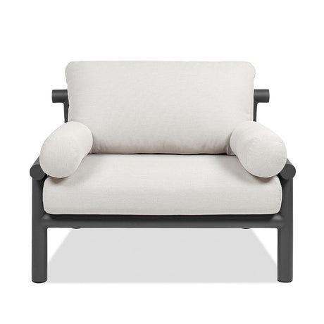 Zara - Dowel Frame Bolster Patio Deep Seating Armchair, Axroma Olefin - Wheat Beige by Couch.com