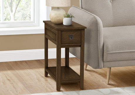 Accent End Table, 2 Tier, Narrow, Storage Drawer, Transitional - Walnut by Couch.com