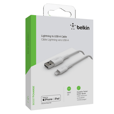 Belkin Boost Up Charge USB A to Apple Lightning Cable 10ft White by Belkin