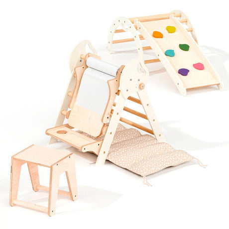 4in1 Montessori Climbing Set: Triangle Ladder + Climbing Arch + Slide Board + Art Addition