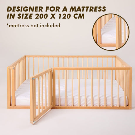 Full Montessori Floor Bed Frame for Toddlers with Fence