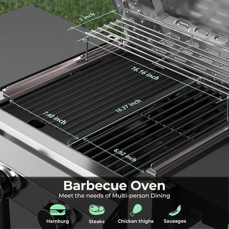 3 Hearth Propane Gas Grill, 355 Sq. Inch Cooking Area, Outdoor Camping Picnic, Black