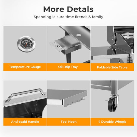 2-Burner Stainless Steel Propane Grill, 16,000 BTU Portable Gas BBQ with Electronic Ignition