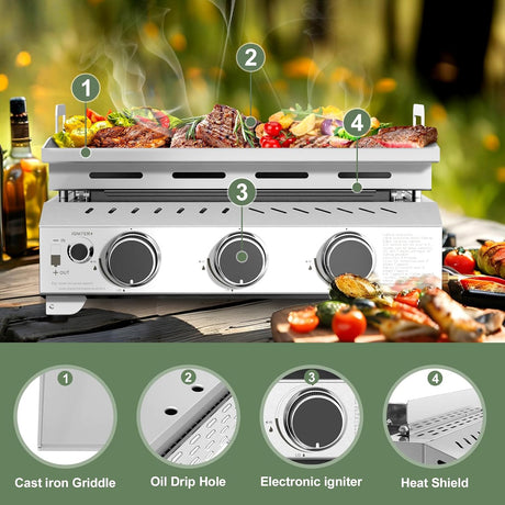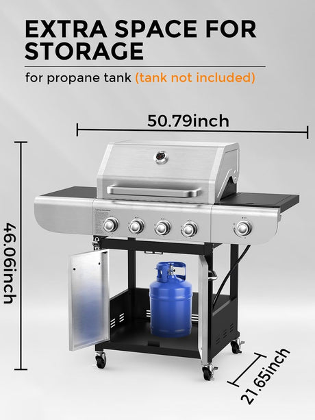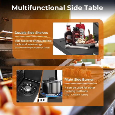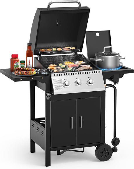 3 & 4-Burner Propane Gas Grills with Side Burners, for Outdoor Cooking, BBQ, Patio, Camping