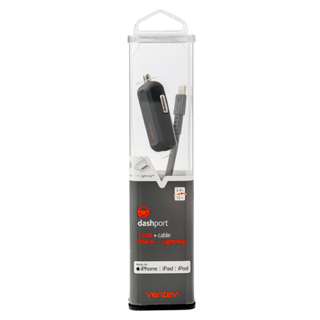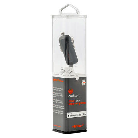Ventev 12W dashport r1240 Car Charger and USB A to Apple Lightning Cable 3.3ft by Ventev
