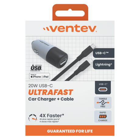 Ventev 20W ULTRAFAST USB C Universal Car Charger and USB C to Apple Lightning Cable by Ventev