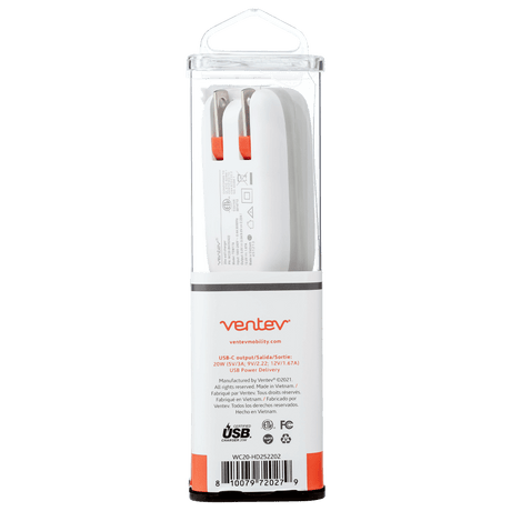 Ventev 20W ULTRAFAST USB C Universal Wall Charger and USB C to USB C Cable by Ventev