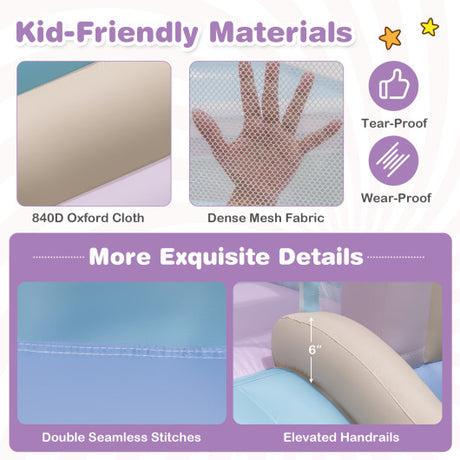 Inflatable Bounce House 4-in-1 Kids Princess-themed Bouncer Blow-up Bouncy Castle with 480 Blower