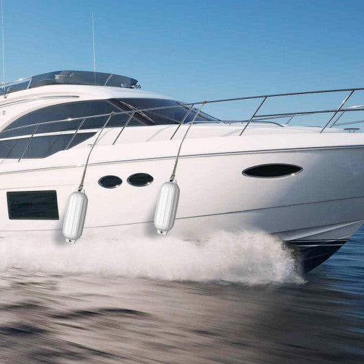 - Vinyl Material: It is molded out of commercial strength marine vinyl also the material has the function of UV resistance also do good at aging resistance and gas tightness. The curved design on the edge can properly give the power to resist collision. And reinforced rope holes on both ends and the fenders ribbed design is made for all around resilient protection of your sail.