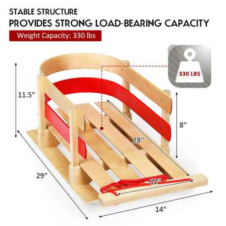 54 Inch Kids Wooden Snow Sled with Metal Runners and Steering Bar