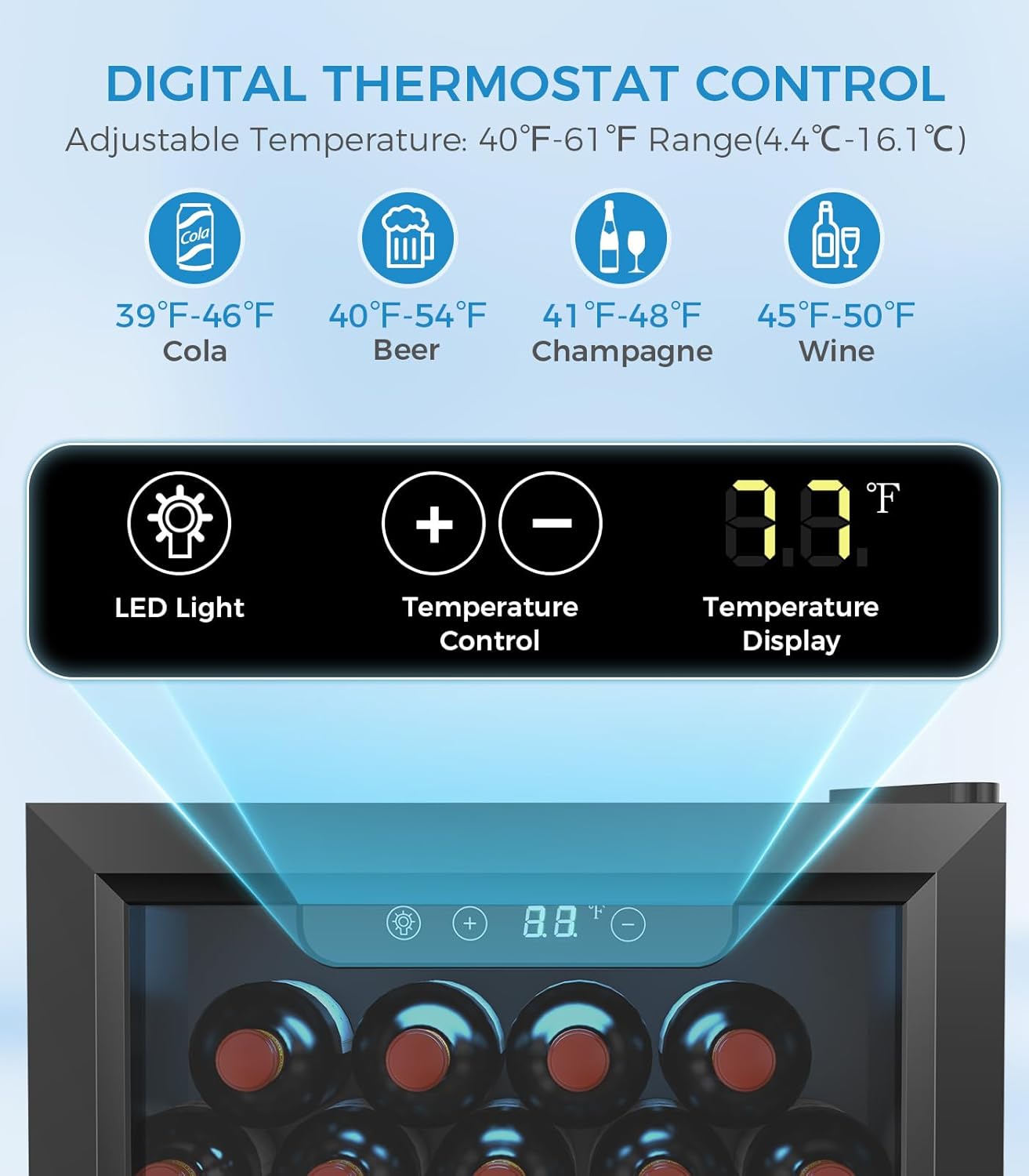 【Powerful cooling effect】- The drink fridge allows you to store beverages and alcohol under optimal temperature conditions, with a working temperature range of 40 ° F-61 ° F and a knob temperature control to allow you to customize the temperature. This beverage refrigerator will be a perfect puzzle for your office, bedroom, and entertainment room.