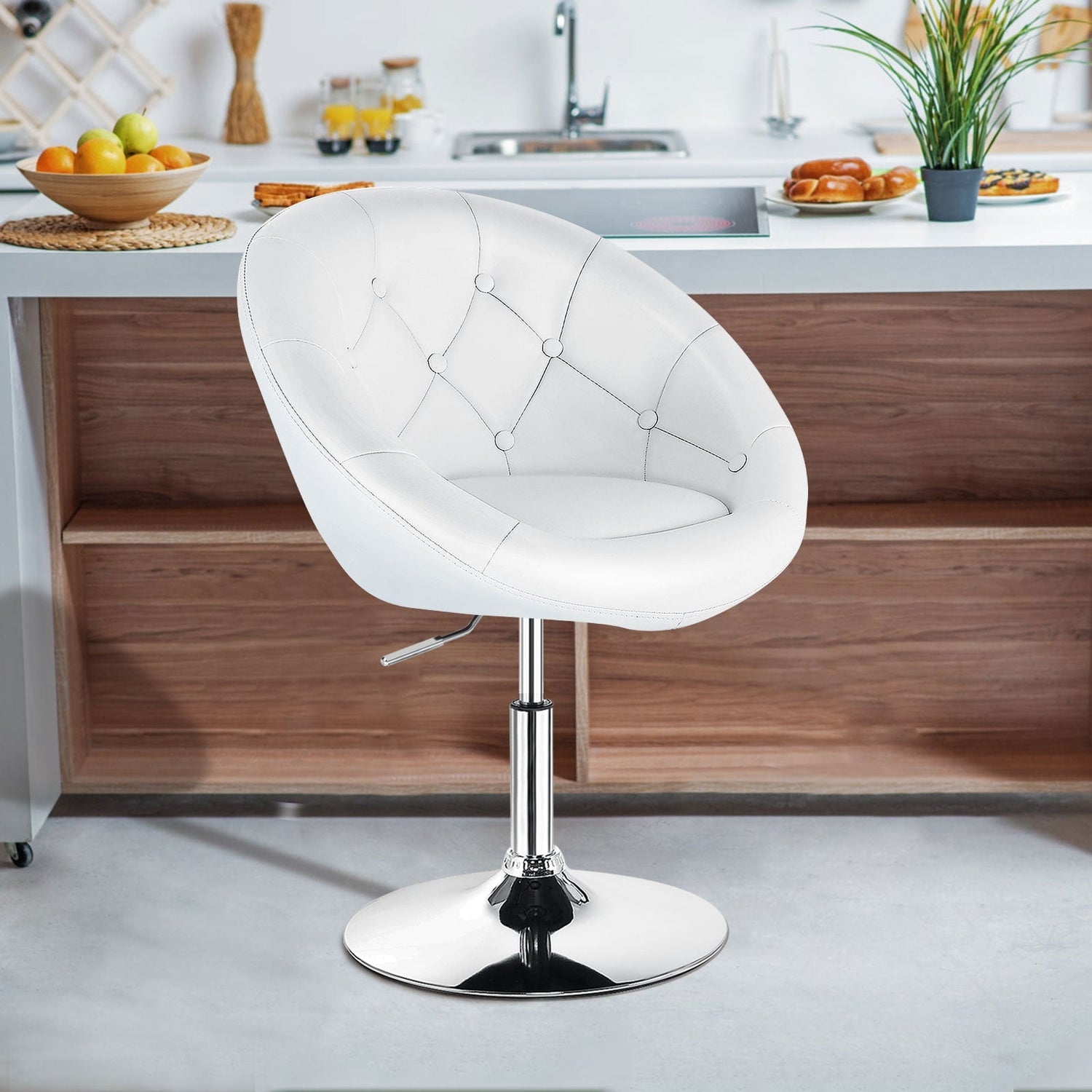 This 1PC adjustable swivel round tufted back accent chair is ideal for your work and life. With a modern interior style The chair Is great for home use or bar use and can also be used in your shop. With solid chrome construction and distinctive design It will surely be your best choice. Don't hesitate to buy it now! If you are looking for this product don't hesitate to place an order! Brand New And High Quality Solid Chrome Frame And Comfortable Back Round Cushion Filled With High-Density Stereotypes Sponges Can Be Used For Home Bar Shop Rubber Feet To Prevent Scratching Less Assembly Required
