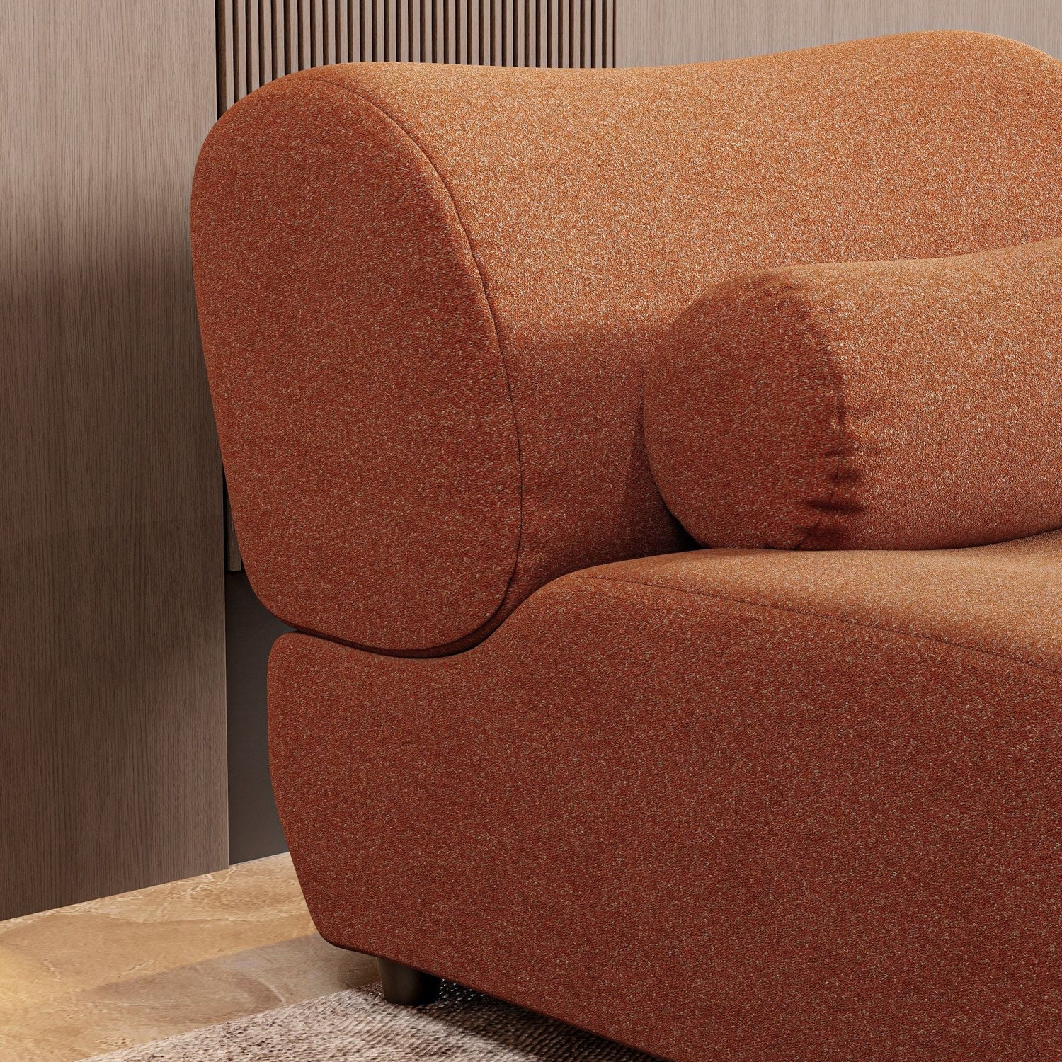 Couch.com 1 Piece Modern Modular Chenille Sofa With Reclined Backrest & Cylindrical Pillows, Upholstery, Sectional For Large Spaces Rust Orange, Fabric Construction, Orange Finish