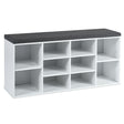 10-Cube Organizer Shoe Storage Bench with Cushion for Entryway-White