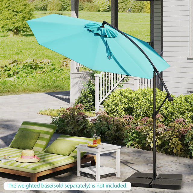 10 Feet Offset Umbrella with 8 Ribs Cantilever and Cross Base-Turquoise by DirectDeals
