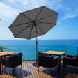 ● With 24 solar-powered LED lights to light up the night● Handy crank lift makes it easy to open or close the patio umbrella● Innovative push-button tilt mechanism for shade in all directions● 1.5" diameter pole and 8 sturdy ribs for a powerful support● Made of premium polyester fabric to block away scorching sunlight● Vented canopy for better air circulation and wind resistance● Sewn-in hook and loop fastener straps to easily wrap around the closed umbrella● Ideal for residential commercial locations and any outdoor places