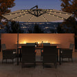 10 Feet Solar Offset Hanging Umbrella with Base and 32 LED Lights-Taupe - Taupe is backordered and will ship as soon as it is back in stock.