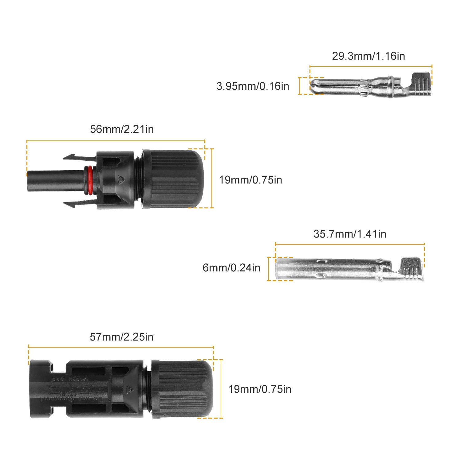 Our solar connectors are specially designed for connecting photovoltaic solar systems, ensuring long-term reliability and performance. Made from premium materials, they are sturdy and offer a longer lifespan compared to others. Ideal for completing a solar panel array, especially in parallel applications, these connectors are built to handle diverse weather conditions with their IP67 waterproof rating, making them suitable for use on rainy or snowy days.