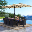 10 Piece Outdoor Patio Dining Set with 15 Feet Double-Sided Twin Umbrella-Beige