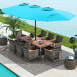 10 Pieces Patio Wicker Dining Set with 15 Feet Double-Sided Patio Umbrella-Turquoise
