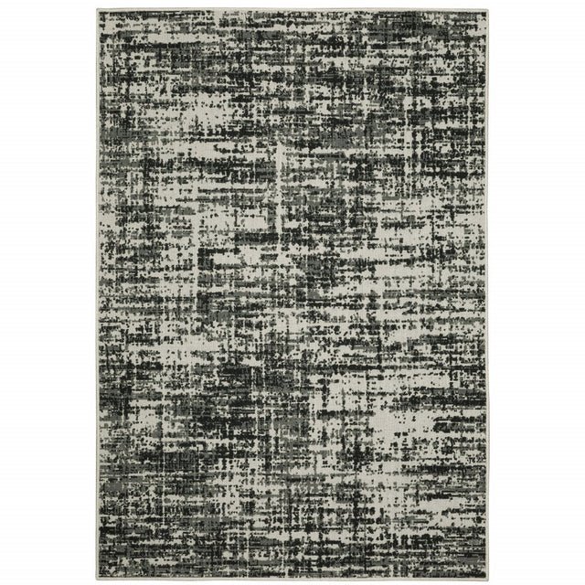 10' X 13' Beige and Black Abstract Stain Resistant Indoor Outdoor Area Rug