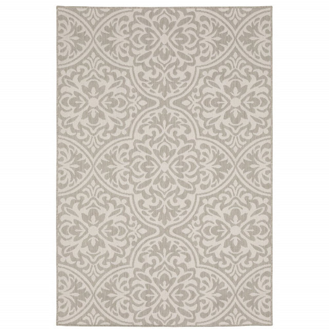 10' X 13' Gray and Ivory Floral Stain Resistant Indoor Outdoor Area Rug
