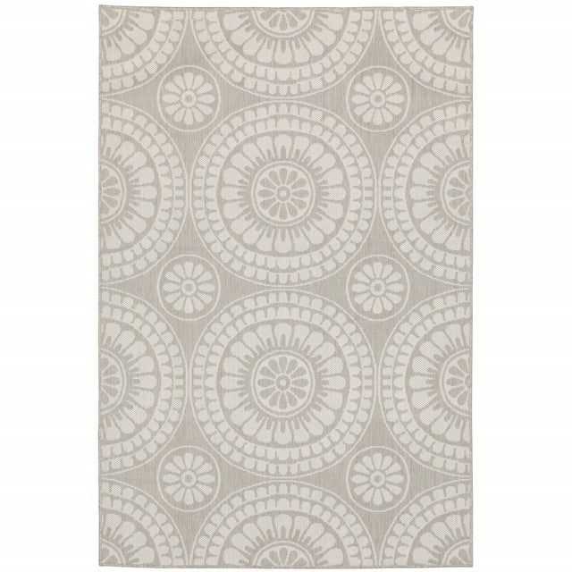 10' X 13' Gray and Ivory Geometric Stain Resistant Indoor Outdoor Area Rug