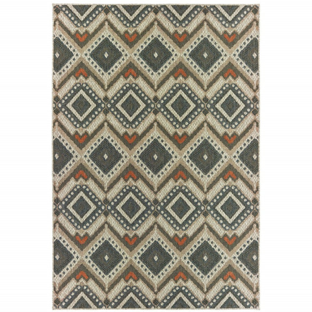 10' X 13' Gray Geometric Stain Resistant Indoor Outdoor Area Rug