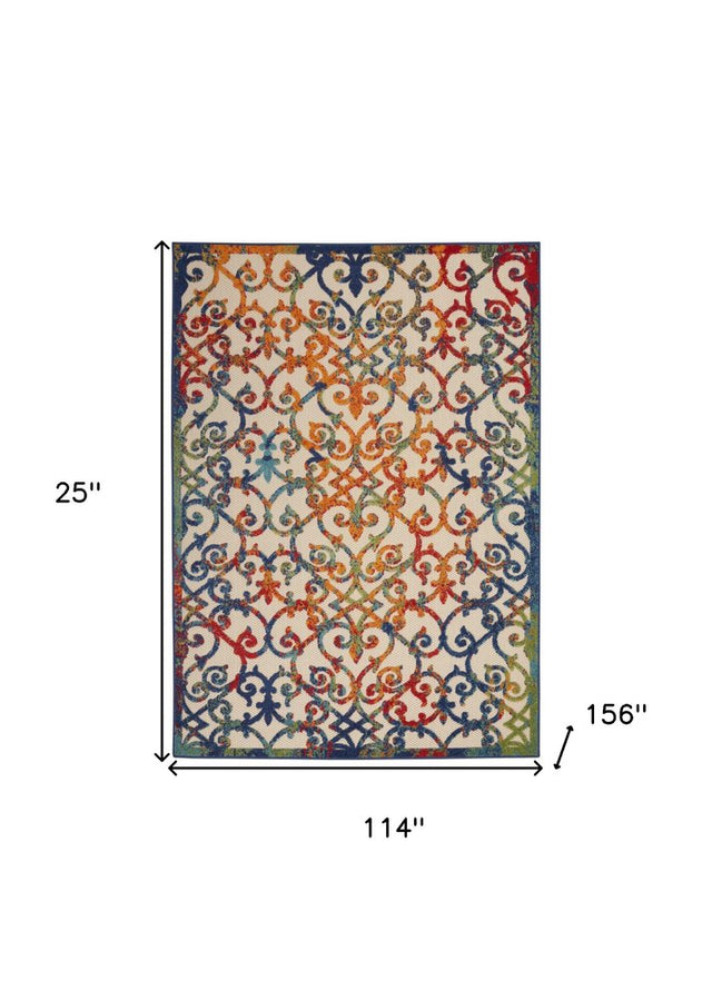 10' X 13' Ivory And Blue Indoor Outdoor Area Rug