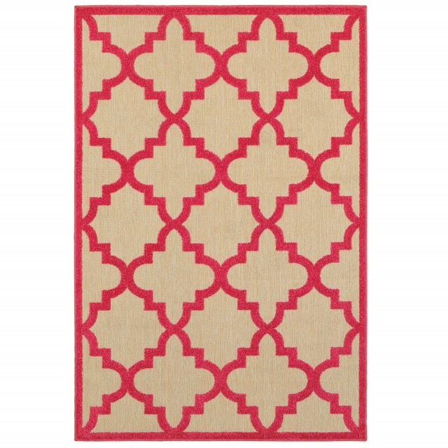 10' X 13' Red Geometric Stain Resistant Indoor Outdoor Area Rug