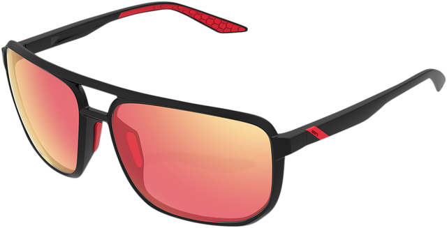 100% Konnor Aviator Sunglasses - Square - Black - Red Mirror 61043-100-43