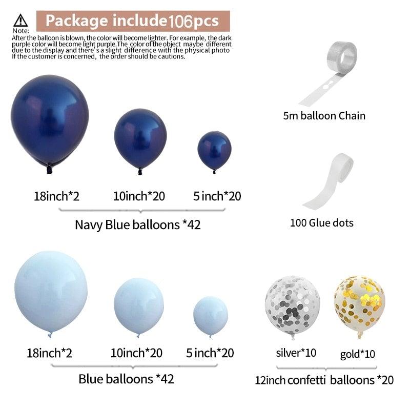 106pcs New Retro Blue Balloon Garland Arch Kit Confetti Balloons For Baby Shower Wedding Birthday Party Anniversary Ballon Decoration Shower Party is backordered and will ship as soon as it is back in stock.