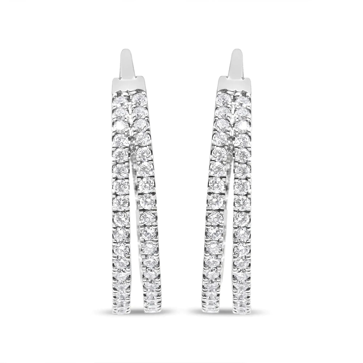 10K White Gold 1 1/2 Cttw Lab Grown Diamond Inside Out Double Row Split Criss Cross 3/4" Inch Hoop Earrings (G-H Color, SI1-SI2 Clarity)