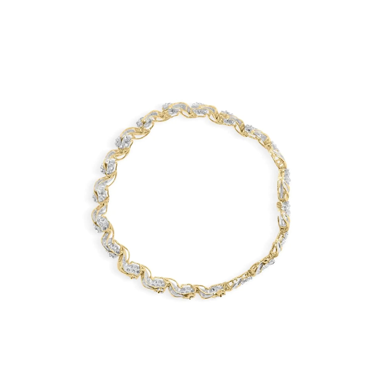 10K Yellow Gold 4.00 Cttw Diamond Floral Design Spiral Link 7.50" Bracelet (I-J Color, I2-I3 Clarity)