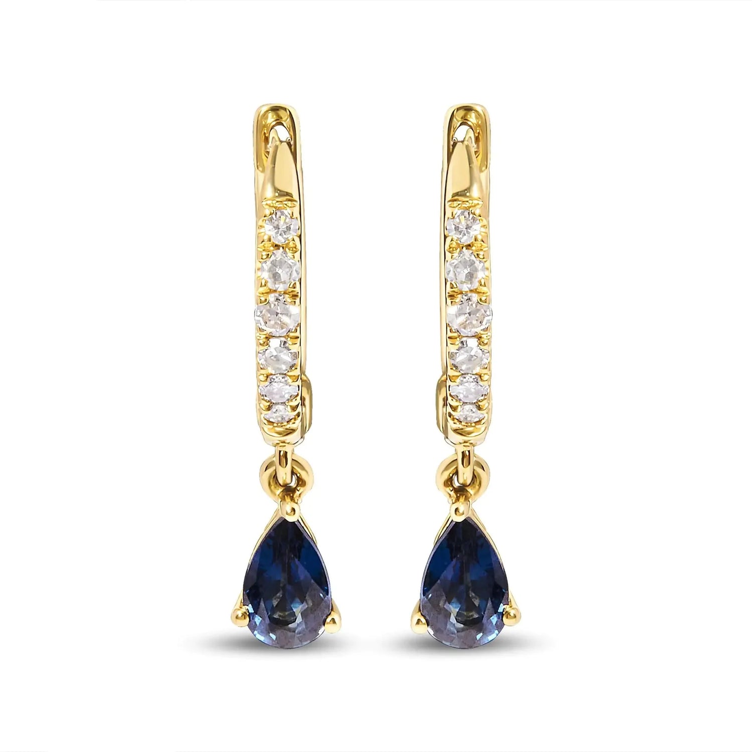 10K Yellow Gold Pear Blue Sapphire and 1/10 Cttw Diamond Drop and Dangle Huggy Hoop Earrings (H-I Color, I1-I2 Clarity) is backordered and will ship as soon as it is back in stock.
