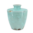 12" Aqua Terracotta Crackle Glaze Round Table Vase