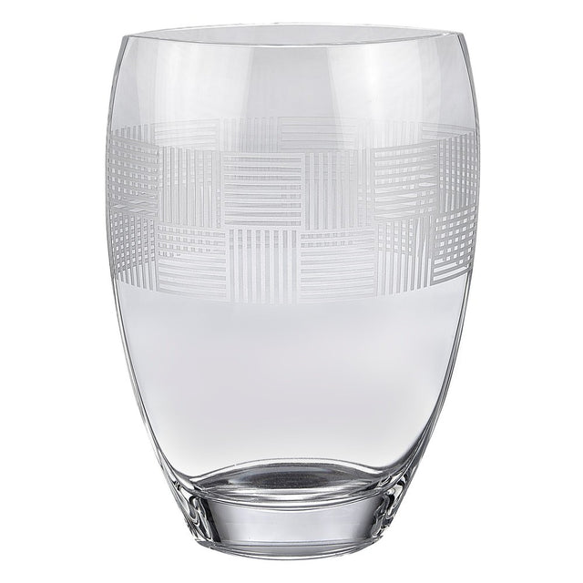 12" Clear With Geometric Pattern Oval Crystal Table Vase