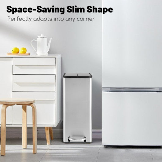 ● Slim Shape and Wide Use: Designed to be space-saving  the step trash can properly fits into any corner space. In addition  it comes with side handles  enabling you to move it to your kitchen  bathroom  living room  office  and more.