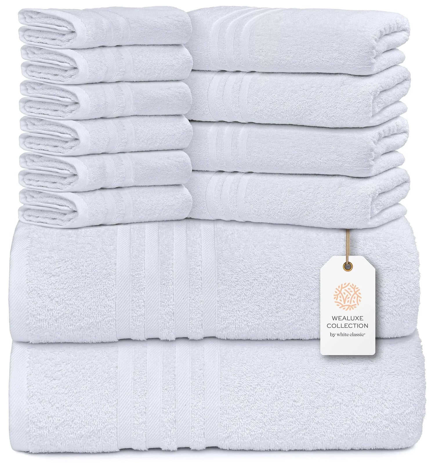 Long-Lasting Durability: Experience long-lasting quality with the Wealuxe 12 Pc Bathroom Set in White. Crafted with high-quality materials and expert craftsmanship, these towels are exceptionally durable. They withstand regular use and washing without compromising softness, absorbency, or quality. Enjoy the luxurious feel and appearance of these White towels, knowing they will maintain their style over time.