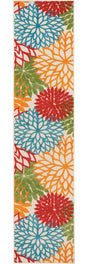 12' Green And Ivory Floral Indoor Outdoor Runner Rug