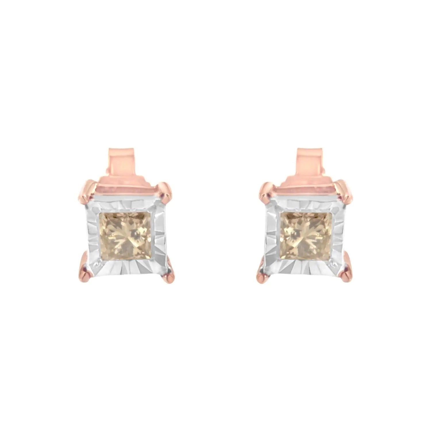 14K Rose Gold Plated Two-Tone .925 Sterling Silver 1/2 Cttw Princess-Cut Square Diamond Solitaire Miracle-Plate Stud Earrings (K-L Color, I2-I3 Clarity)