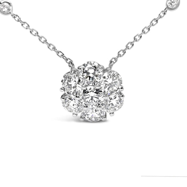 14K White Gold 3.0 Cttw Lab Grown Diamond Floral Cluster and Station 18" Pendant Necklace (G-H Color, VS2-SI1 Clarity)