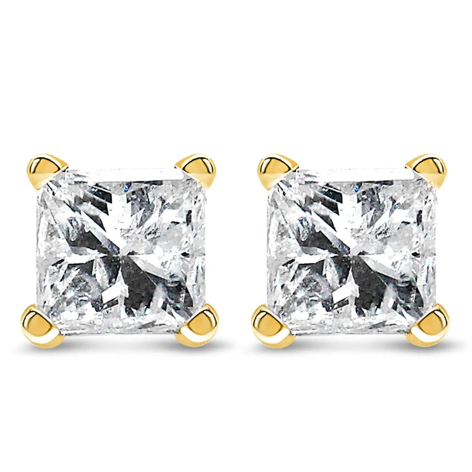 14K Yellow Gold 1/2 Cttw Princess Cut Diamond Solitaire Stud Earrings with Screwbacks (I-J Color, SI2-I1 Clarity)